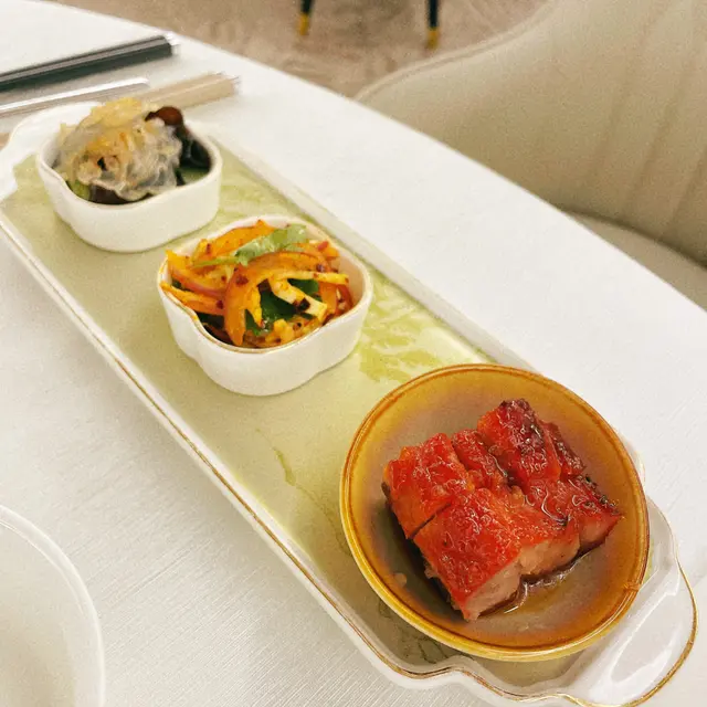 帶內地朋友四人登上合和酒店20樓的合和軒,晚市入座寬敞包廂,私密度高,這裡菜式走經典粵菜路線。我們今晚點晚市四人套餐分享美食。🍵✨合和軒晚市套餐($1388/4位),分量剛好,四人吃得滿足。92 合和黑豚肉叉燒:蜜香不膩,肉汁滿滿,每片厚厚的,品質在線。90 涼拌紅蜇頭:爽彈清脆,夏夜開胃🥗。88 麻辣手撕雞:辣度溫和,雞皮同雞肉不會太鞋,鹹香有辛辣味。93 是日燉湯:草本清甘,油花少,入口和順,溫泉窩心的味道。91 菜遠炒斑球:斑球外層微粉香,內裡嫩滑,菜遠脆綠,鑊氣足🐟。94 本地農場豆酥雞(半隻):雞油香與蒜香貼合,皮薄肉嫩🍗。89 甜梅菜蒸肉餅:鹹甜平衡,梅菜香同肉餅混得好好,唔會有唔好的筋位,肉質又鬆軟,送飯一流。90 啫啫芥蘭煲:啫啫聲上檯,蒜香撲鼻,莖位爽甜,醬色不過重夠哂味。87 絲苗白飯、精選糖水及糕點:米香分明,甜品端得體面,收尾清雅。整體出品的品質穩定性讓人放心。同朋友黎如果有車就仲正,食夠HK$600就可阮3個鐘泊車;)…查看更多
