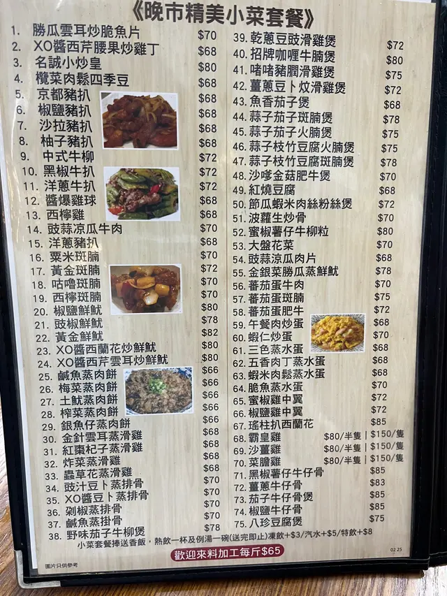 今晚嚟柯士甸搵嘢食,離開圓方之後,發現渡船街嗰邊都有好多小店想幫襯。支持下小店!見佢哋嘅晚市精美小菜套餐$66起,仲包括例湯同熱飲一杯,性價比真係勁高!所以決定入黎呢度試下 。呢間小店有個超大電視,今日係星期三,有好多人黎睇馬,最正係佢哋用戰鬥碗嚟飲啤酒,仲有花生薯片食,真係熱鬧。夥計推介我哋食皇牌脆皮燒烤雞,超級有驚喜,皮香脆到真係好似喺酒樓食嗰啲炸子雞咁,咬下去即刻爆汁,肉質鮮嫩。野味茄子牛柳煲味道濃烈,牛柳柔嫩入味,茄子軟滑又多食物份量超級大,下次要叫到幾個人先可以食到幾款 。…查看更多