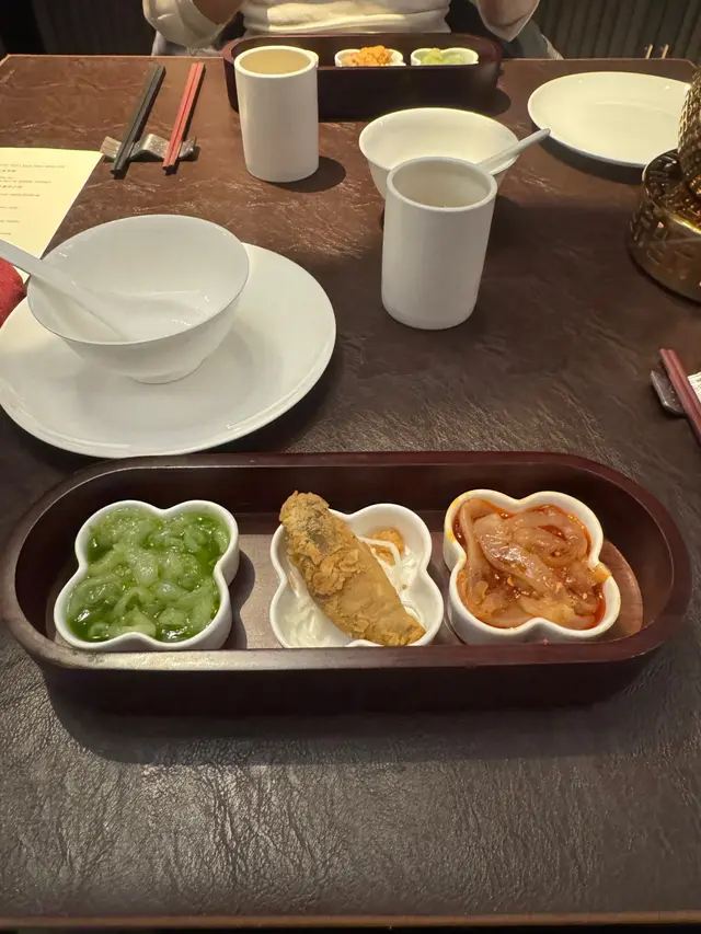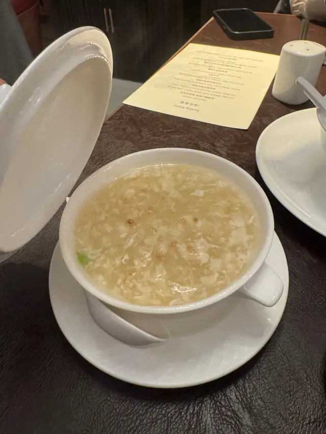 今日嚟到大宅,真係一個又雅致又溫馨嘅好去處!呢度嘅環境好有古典韻味,細緻嘅裝潢同埋柔和嘅燈光,好有格調又唔失可愛感,係一個適合約埋閨密或家人一齊嚟放鬆嘅完美地方。我試咗啲特色菜,真係每一道都係用心之作。首先嘅椒鹽糖心鮑魚,外層炸得酥脆,鮑魚內裏超嫩,鹽香椒香完美融合,好有層次感!鴛鴦海蜇絲又清新又辣辣哋,麻辣又開胃,食完真係忍唔住想再來一份。冬瓜蟹肉燴冬蓉,冬瓜吸收咗蟹肉嘅鮮味,湯底清甜又濃郁,超滋補。仲有廿年陳皮拔絲虎蝦球,外層酥脆,蝦肉甜美多汁,陳皮提味,層次豐富。文火和牛係入口即化,醬汁香滑,每一啖都係享受!另外,亁燒椰菜花龍躉,龍躉肉質鮮甜,椰菜花吸收咗醬汁,口感超豐富。蝦子花膠濃雞湯配上彈牙嘅手工拉麵,湯底濃郁鮮美,食完覺得滿足又暖心。最後嘅陳皮蓮子紅豆沙,甜而唔膩,紅豆同蓮子好有嚼勁,陳皮嘅香味點綴得恰到好處,好想多點一碗呀!整體嚟講,呢度嘅菜色每一樣都好有特色,味道層次豐富,係一個可以盡情享受粵菜精髓嘅高雅又可愛嘅餐廳,好值得再嚟!…查看更多