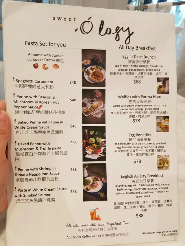 朋友約係又一城食野, 叫我揀食咩, 對於我黎講, 一直覺得又一城係無咩選擇, 睇OPENRICE見到呢間多笑面, 咁就試下呢間啦只係影左佢LUNCH同埋TEA, 但其實佢係又勁多野可以叫, 有西式野食, 甜品, 都有中式既甜品, 不過可能佢係太多選擇, 所以出菜既速度比較第一款係黑松露白汁雜菌意粉熱烘烘出黎好香黑松露味,食落口白汁比黑松露味濃,香濃既汁可以沾滿每口意粉,美中不足係芝士略為小另外我地叫左個tea set一黎到個反應係,嘩 咁多既,第一次食份量咁多既tea set, 每樣份量都係標準份量唔係迷你最近呢個係芝士三文魚溫泉旦沙律, 一切落去d旦汁就流出黎,個配搭同份量都幾好,但個餅底比較硬身薯條剛剛炸,香脆,啖啖食到薯仔香味鬆餅有菠蘿同士多啤梨每樣一件,初頭視覺上覺得士多啤梨會好味d,但事實上菠蘿較優勝,菠蘿好甜多汁配上鬆餅好夾,相反士多啤梨本身無汁所以食落會比較乾綠茶牛角包同雪糕我地食到最後先食,所以令到牛角包硬身左無好食同香脆雪糕好香滑 唔會太甜 我個人鍾意一啖薯條配一啖雪糕食 好夾好好味我地睇到人地個火焰雪山好正,咁就叫埋黎試下,制作需時,如果想叫就要預早叫,酒味略濃,蓋過左生果同旦白的味道,如果減少酒既濃度會更好…查看更多