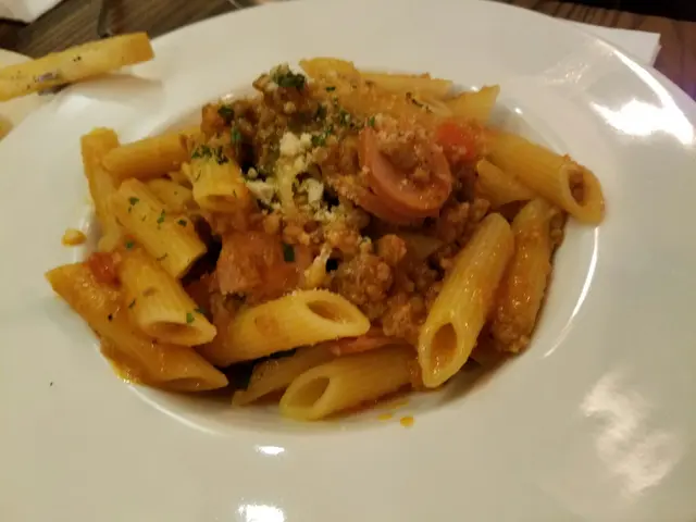 之前睇到雜誌介紹呢間餐廳既 burger, 不過我個人唔太喜歡burger,見到佢有意粉,咁就一試啦,佢個午餐頭盤可以揀沙律/餐湯/薯條薯條熱辣辣炸出黎,仲要係我最愛既粗薯條,香口重薯仔味蘑菇湯香濃 creamy, 有細細粒既蘑菇粒意粉味道可以 淡淡蕃茄味,但份量較小整體都幾好 不失為一個hea既好地點…查看更多