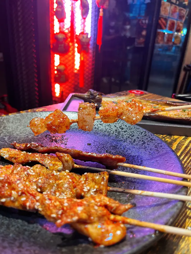 香辣烤魚用上江團魚 入口彈牙 仲要冇骨‼️ 加左海帶 支竹 娃娃菜 配上超濃香湯底 魚肉同配菜都索晒精華 香到不得了 食唔停‼️ 條魚仲要超厚肉 正串燒叫左牛筋 豬腩肉 豬頸肉 蒜蓉茄子 雞翼 必須講呢一度嘅串燒功力真係唔野少 全部都勁香 仲要外脆內軟😍 豬腩肉脂肪夠多 一咬落去油脂爆曬出嚟 蒜蓉茄子係招牌菜之一 蒜味香濃 入口溶化 其他樣樣都係咁高質😎今次過嚟主要係食嘢 嚟到先知 原來舖頭8:30會準時轉燈光 變咗夜場模式 就算唔飲酒都搞到個人勁high 聽老細講 11月放寬之後 更加會搵現場DJ打碟 下次過嚟一定要試吓 呢度啲啤酒都係公道價 配上迷幻燈光 邊唱k 邊劈酒 舖頭氣氛一流 爽到爆👅…查看更多