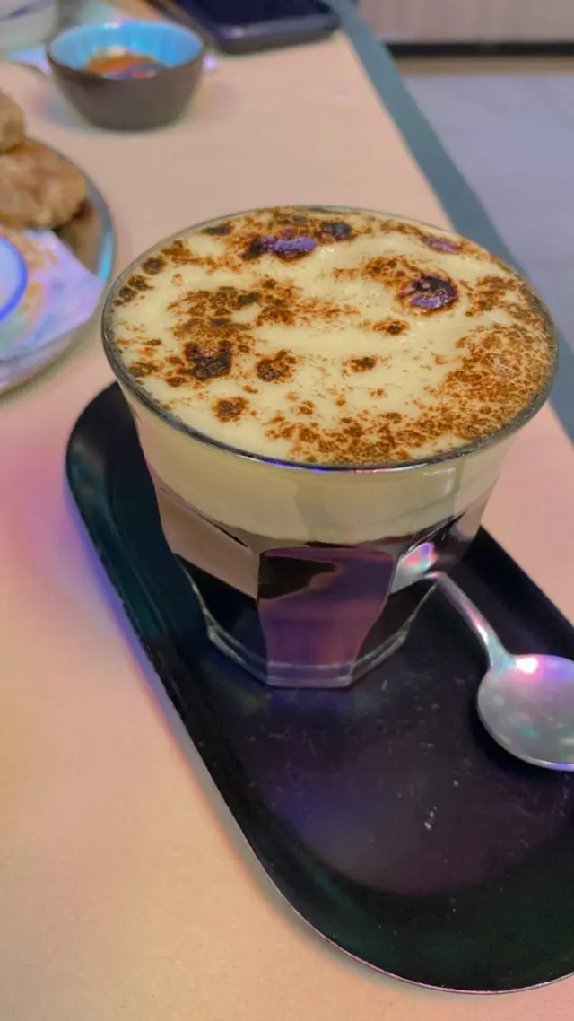 環境擠迫,枱與枱之間近到非常清楚聽到隔離枱講咩,枱亦都好細,唔好坐 食得好唔自在樓面員工亦都唔夠,個個都好忙好慘咁,一個喺水吧位係咁出飲品,之後又走返去樓面,另外兩個樓面帶位收錢送餐一腳踢,所以等比錢等入座等落單都耐同難搵職員,辛苦哂啲職員😫食物方面嗌左兩碗招牌金邊粉,咖啡骨,炸雞翼,蛋咖啡同滴漏咖啡 唔算好多野食但逼到只想快快食完快啲走(本身上菜都好快)招牌金邊粉唔夠熱,湯底比較淡,牛丸食膠波咁,但係牛肋條同埋牛筋就唔錯,其他配料就無特別咖啡骨幾得意,有棉花糖喺頂,倒咖啡落去熱溶佢叫有啲gimmick , 味道唔特別,但煮得幾軟身加返啲分炸雞翼幾好肉大大隻好香口,最正常係佢滴漏咖啡正正常常,蛋咖啡面頭嘅焦糖燉蛋泡沫就幾好味,但同咖啡唔夾,攪勻前後飲都係唔夾唔好飲,就咁食泡沫就好食個個都吹到咁大,會唔會太誇張?…查看更多