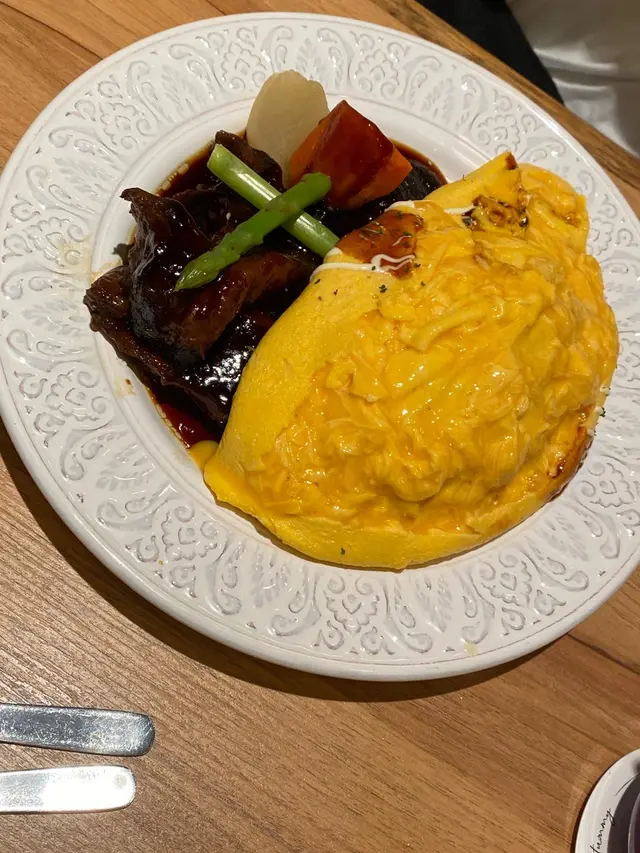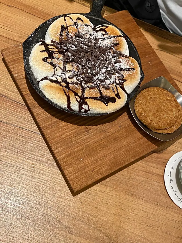 經過時代廣場還未到食飯時間,但又見有少少肚餓,就入咗嚟呢度試吓,因為睇相呢度嘅蛋包飯幾吸引。店員會將碟飯放到你面前,才切開個奄列蛋,奄列蛋味道不錯,但旁邊的牛肋肉汁會太濃郁,下次有機會食的話,會嘗試叫啲冇咁濃味嘅汁。類似卡幫你意粉,煙肉比較硬😑😑咬口的口感不太好,但個白汁做得不錯👍🏿。最後叫返個甜品先,叫左個朱古力棉花糖,可能花糖比較多,食兩粒都已經覺得好甜,不過咁樣焗起嚟嘅棉花糖,外面有一層焦糖香脆,而裏面就軟綿綿🥰🥰,食完就大滿足,如果唔食得甜唔建議食咁多粒如果多兩三個人share會比較好。…查看更多