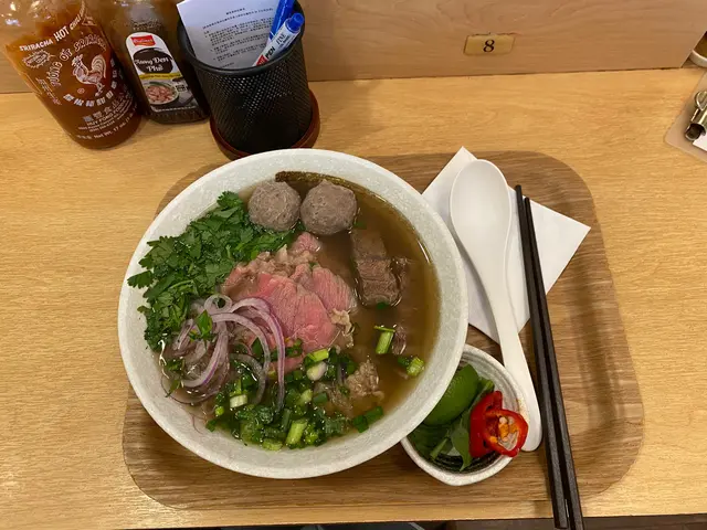 今日特意嚟食,原來佢收半晝,所以我哋係最後一台客人,點了豆漿湯底的黑豚凍河粉再加一個雜錦牛丸牛肉河粉,再叫一個春卷同埋一份蒜香炸雞翼。雞翼都算比較濃,如果下次再食可以點少蒜,可能會比較好😬第一次食凍湯嘅河粉,再加上係豆漿湯底感覺好特別。牛丸牛腩牛肉,都做得好出色,每一啖都食到香濃嘅牛肉味👍🏿👍🏿…查看更多