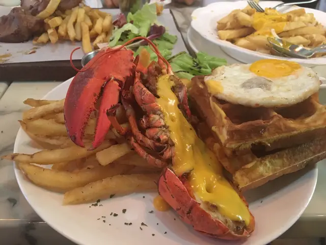 我算係老熟客啦,黎過呢度食幾次,發現叫set係超級抵食,千祈唔好散嗌。今次前菜嘅餐湯係忌廉蘑菇湯,好香, 10分比9分啊😁好多肉粒啊,好好味然後黎左飲品,係金菊茶,好解熱氣,又香,添左幾次水。我點左龍蝦窩夫早餐,朋友食過幾啖之後,佢又跟住嗌😂😂😂。因為太好味啦,龍蝦肉好鮮嫩,又入味,肉質一啲都唔老,配合買香濃芝士真係一流。(順帶一提,每個set都有跟薯條,小食就唔好再買薯條啦!)飲咗朋友幾啖嗰榛子咖啡,唔會太苦因為榛子好香,甜甜的。…查看更多