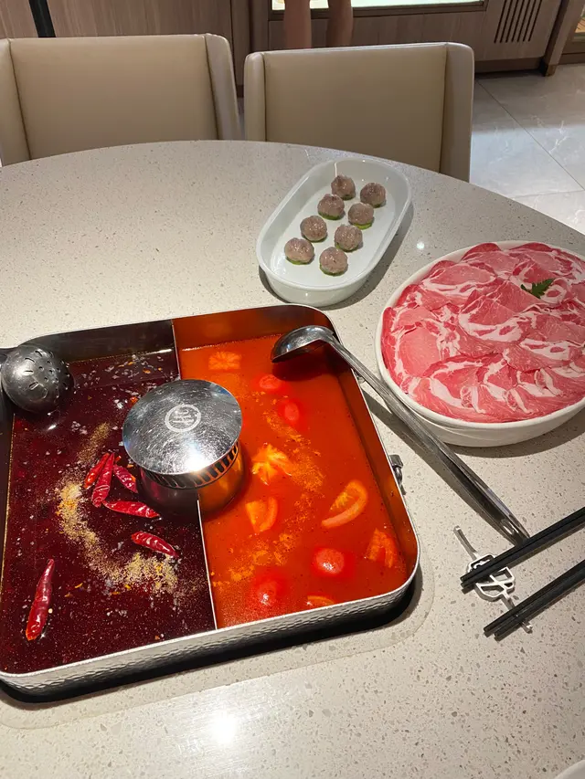 海底撈再尖沙咀開得宴聚很適合人多人聚會和幫朋友慶祝生日!!點員還會幫手佈置。打卡滿分儀式感滿滿。我們選擇了鴛鴦鍋,麻辣和番茄湯,番茄鍋濃郁酸甜是用新鮮的番茄熬製而成。麻辣鍋辣得過癮!我們叫了清油麻辣,入口一點也不油膩!越吃越上頭。豚肉片脂肪分布如大理石紋,輕涮10秒,肉片瞬間蜷縮,吸飽了湯汁的精華。豚肉甘甜與軟嫩,無需過多蘸料!非常新鮮。手打鮮蝦丸:蝦丸呈現自然的淡粉色,能清晰地看到蝦肉的纖維。蝦丸非常彈牙,每一口都是紮實的鮮蝦甜味,真材實料。另外海底撈的服務一如既往地好,外邊更有自助調區!可以調校自己喜愛的醬料。…查看更多