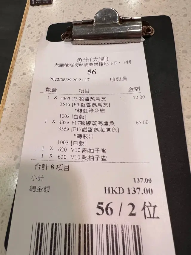 成日都好想搵下呢間魚米究竟係咩飲食集團,真係想衷心給他們意見,可改善其運作,唔好將佢哋煮得好味嘅魚(無論蒸魚或煎魚)因為公司管理問題而令到間舖執笠。每次黎到都會食蒸魚,如果外賣就會要煎魚,攞到返屋企凍咗都唔怕,佢$6x -$7x 一條蒸魚嘅套餐價錢真係好抵,出面普通茶餐廳蒸魚都要$80以上,當然呢度條魚條細條嘅,但一人份量真係啱啱好