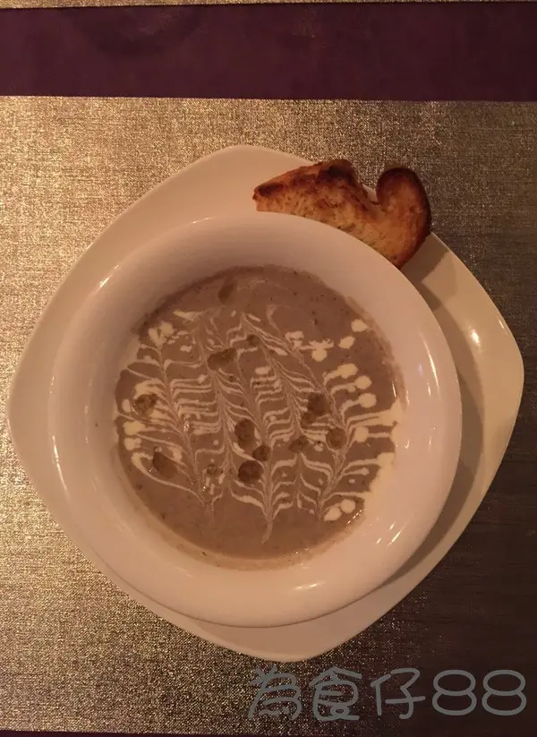 有點歐陸風情跟住先來湯黑松露蘑菇湯,個蒜蓉包好香好脆,個湯好重黑松露味濃湯最合我意